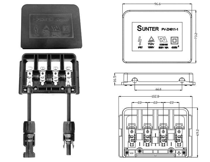 额定电压: 1000V DC (TUV) / 600V DC(UL)