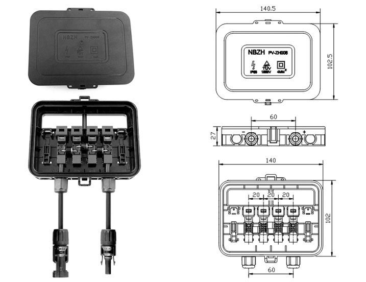 连接线规格: 4-6mm² (TUV) / 12AWG(UL)